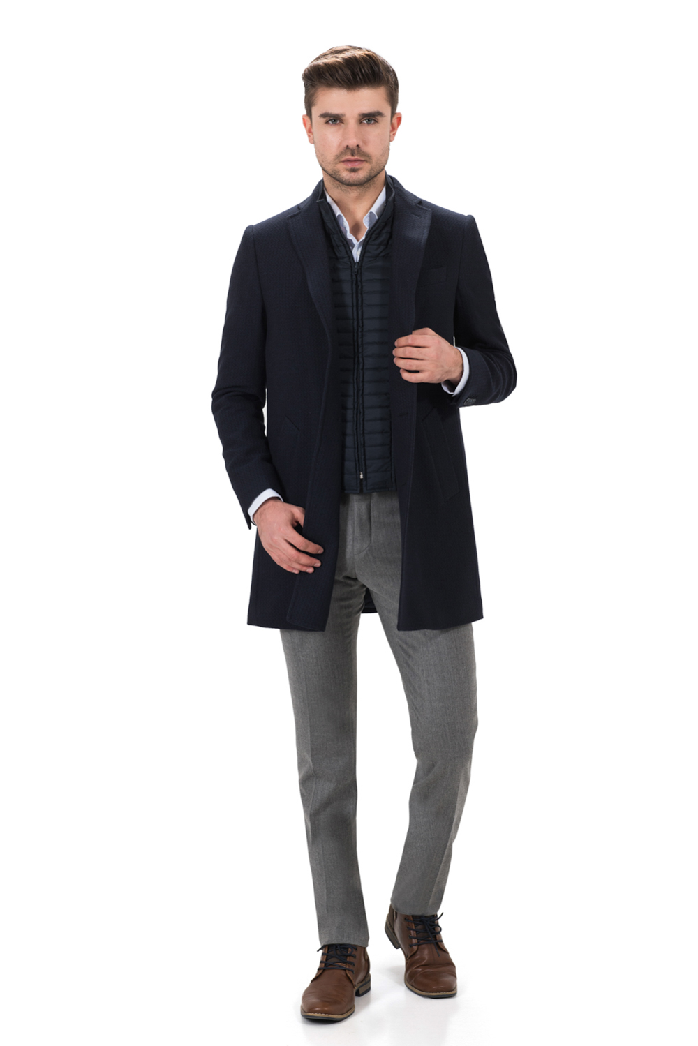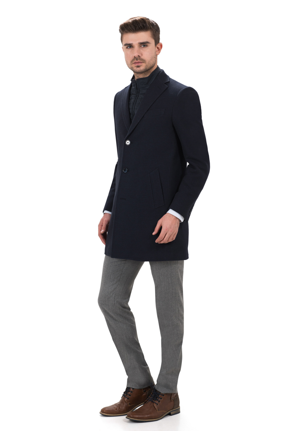 Pardesiu cu croiala slim-fit, realizat din tesatura ameste bumbac si lana bleumarin cu captuseala matlasata. Compozitie: 80% bumbac,15% lana 4%PA