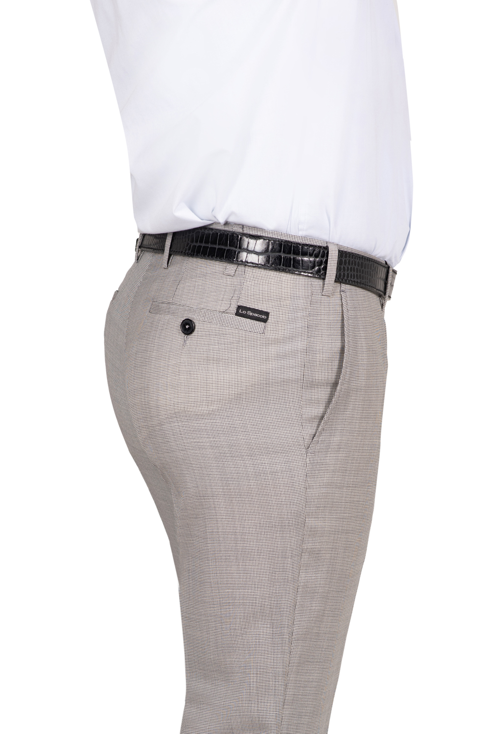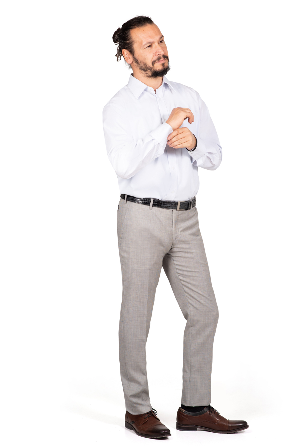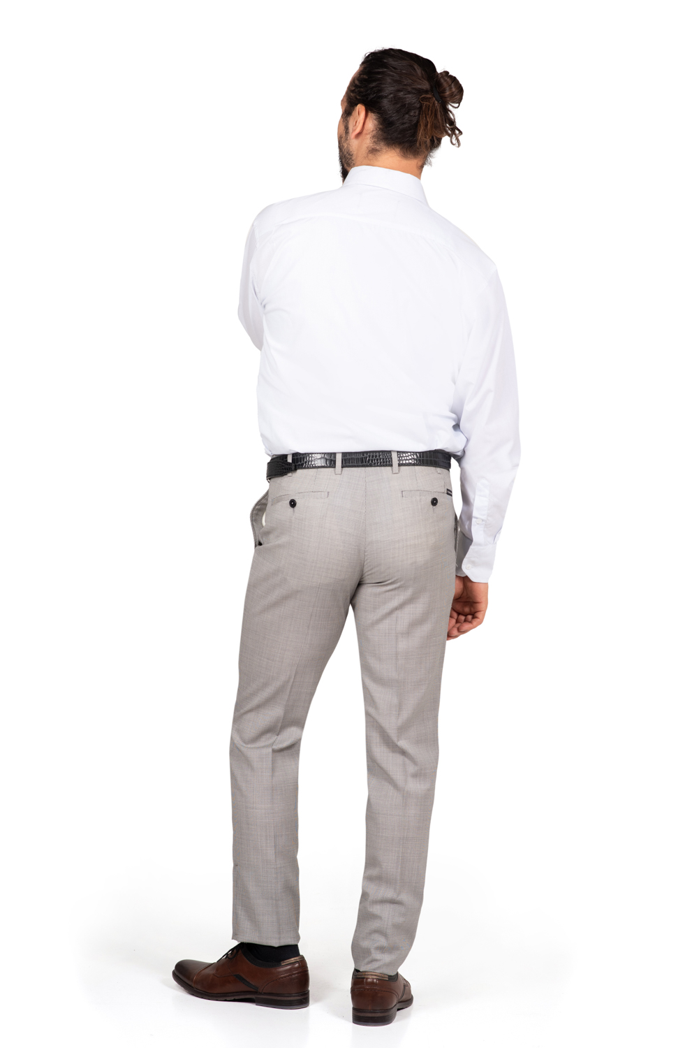 Pantalon cu croiala slim-fit pe talia I realizat din lana gri deschis. Compozitie: 100% lana