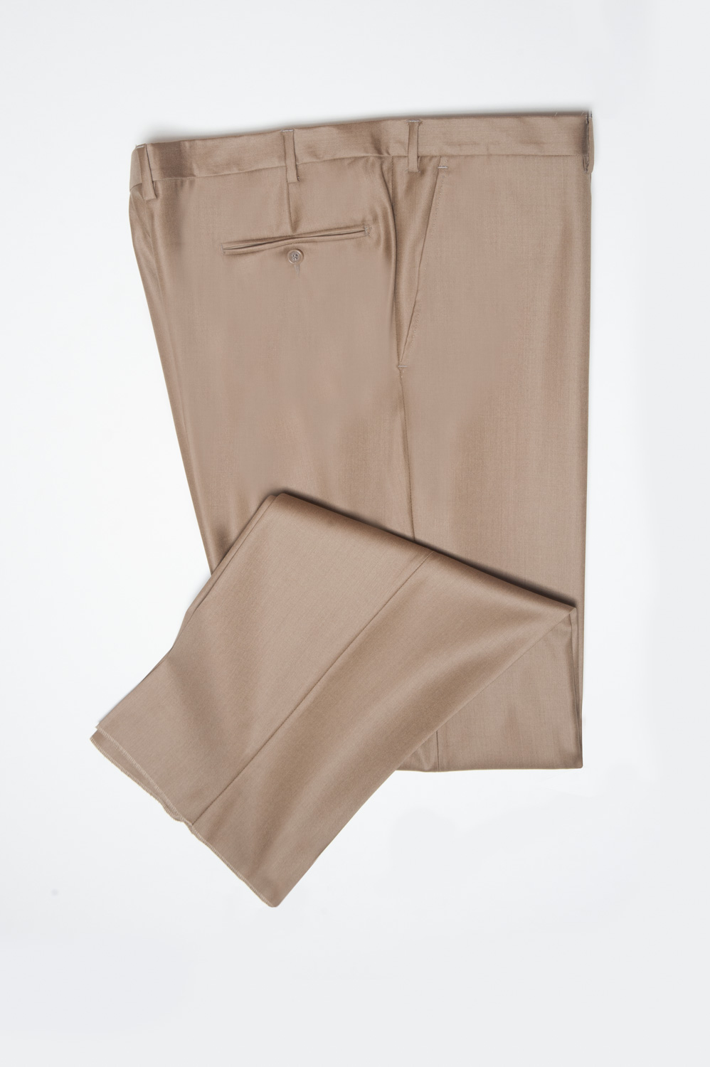 Pantaloni clasici, cu croiala pe talia a III-a realizati din gabardina de lana bej.