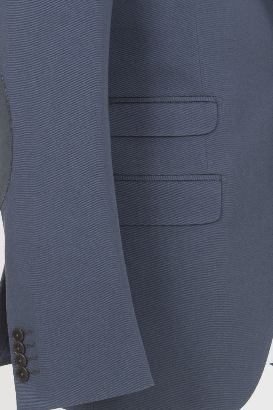 Sacou cu croiala normala, cu cotiere aplicate realizat din gabardina de bumbac bleumarin. Compozitie: 100% bumbac