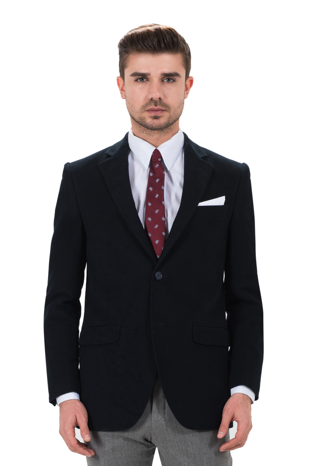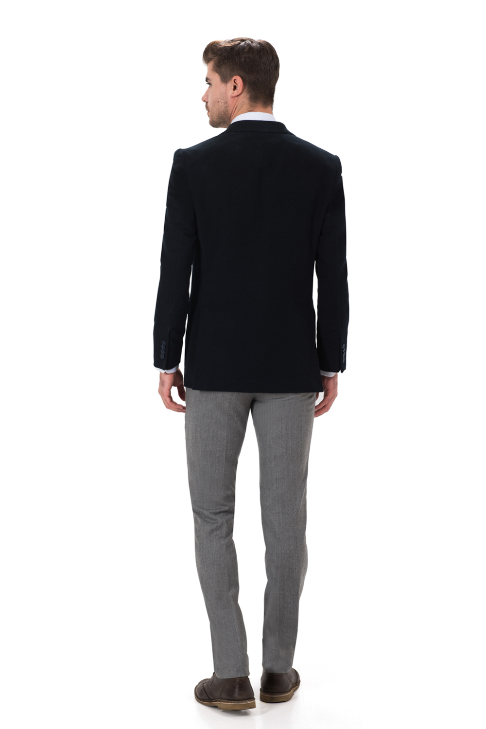 Sacou cu croiala normala realizat din tesatura de bumbac bleumarin. Compozitie: 100% bumbac