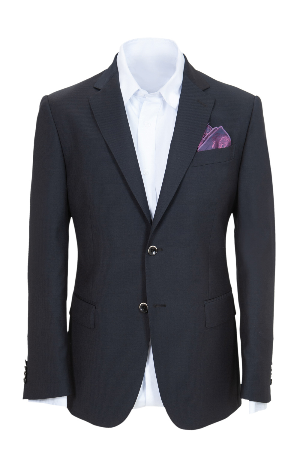 Sacou cu croiala normala realizat din lana neagra cu micropattern. Compozitie: 100% lana