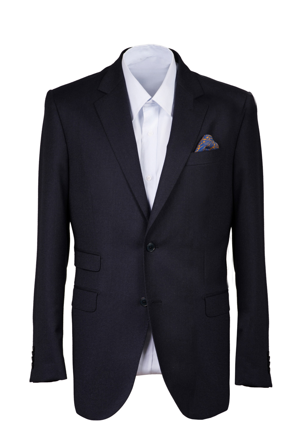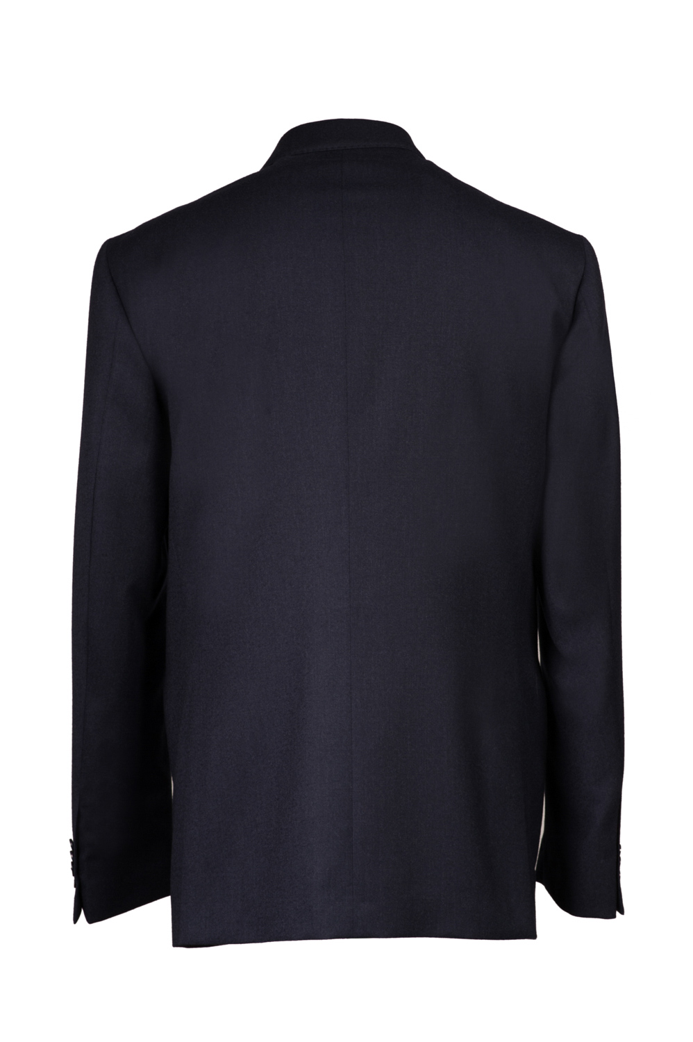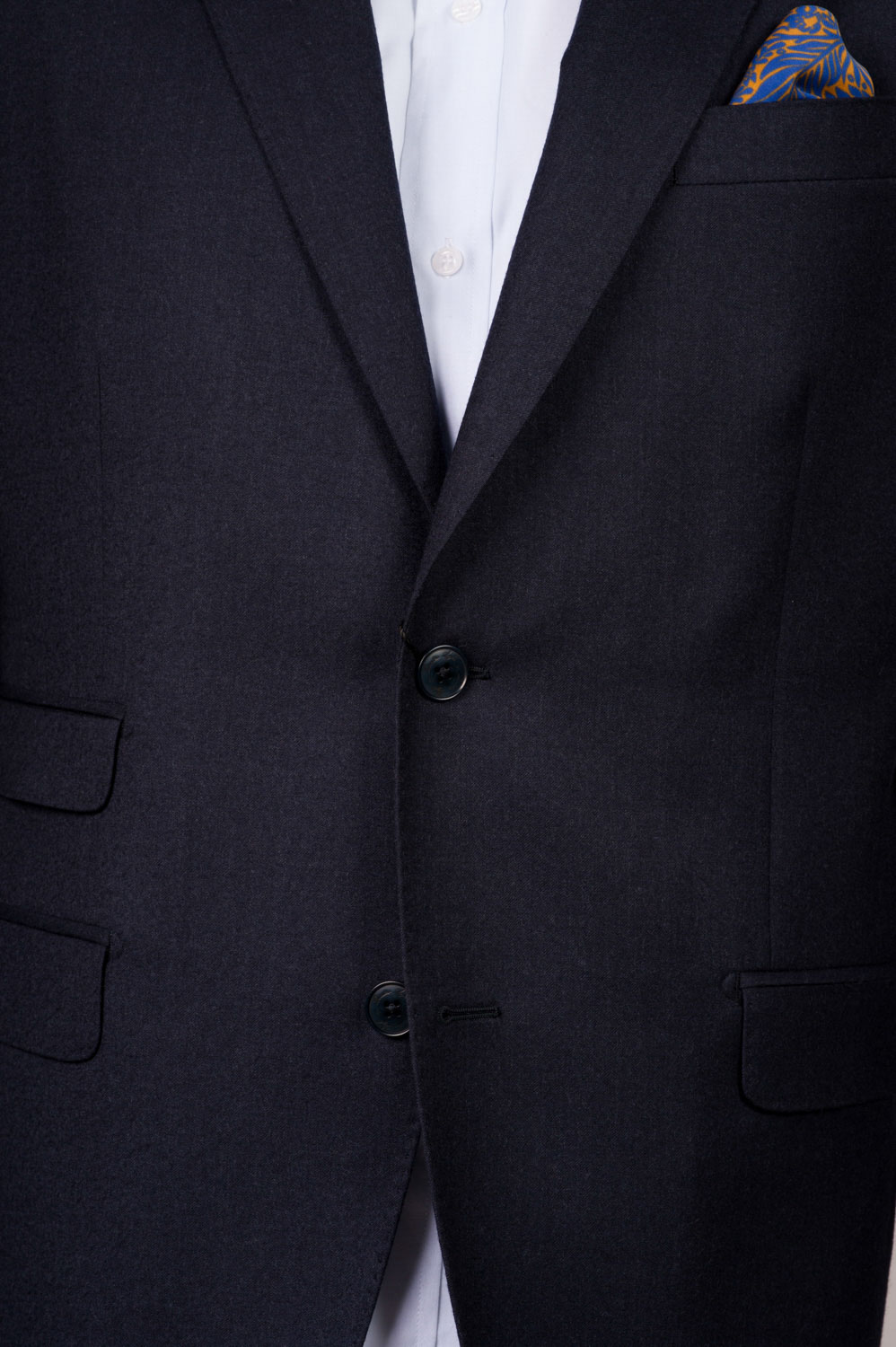 Sacou cu croiala clasica pe talia I, realizat din flanela de lana bleumarin. Compozitie: 100% lana
