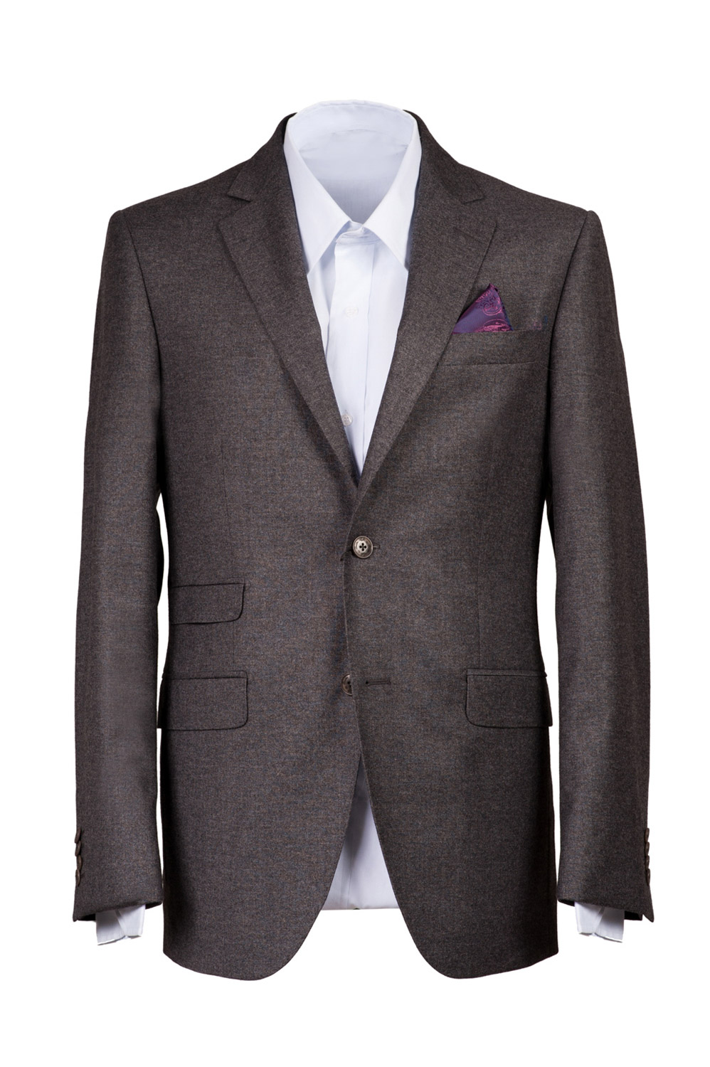 Sacou cu croiala clasica pe talia I, realizat din flanela de lana gri deschis. Compozitie: 100% lana
