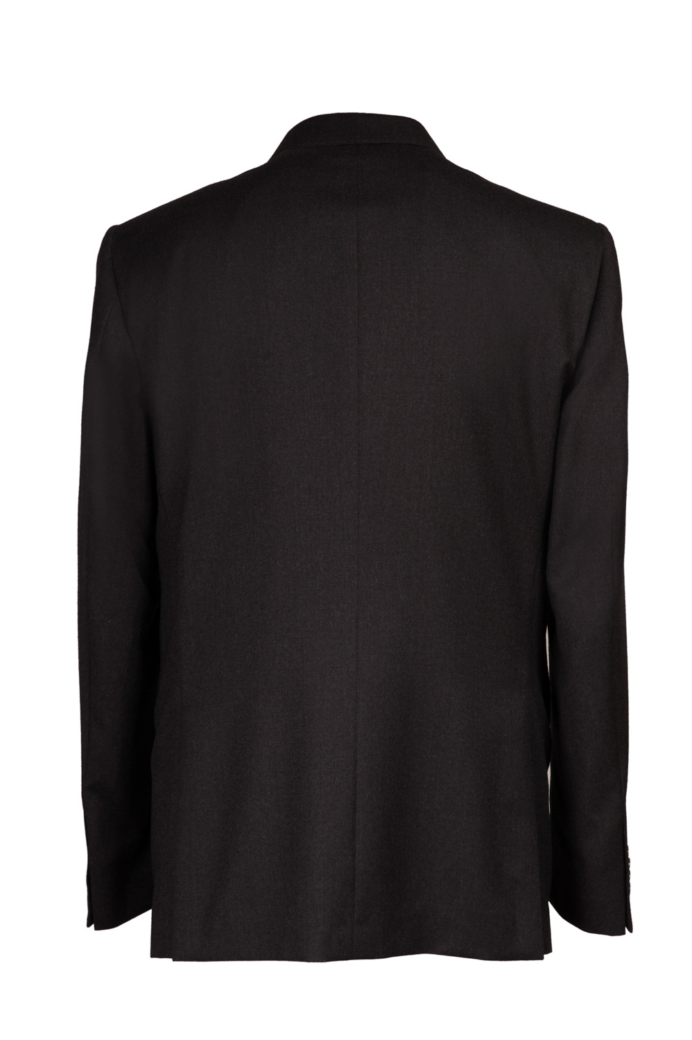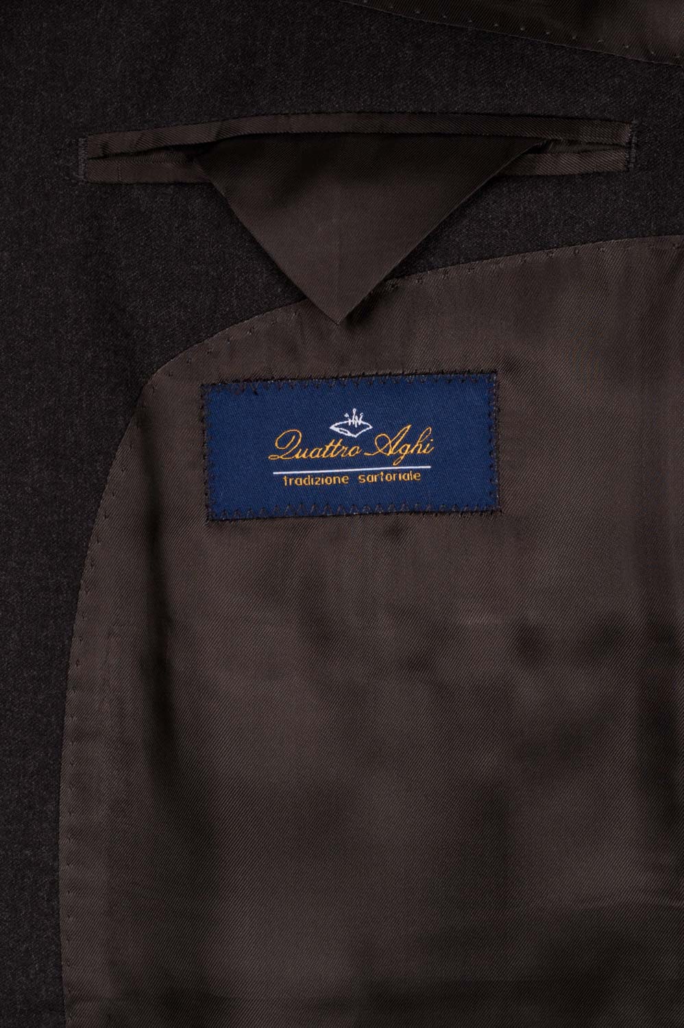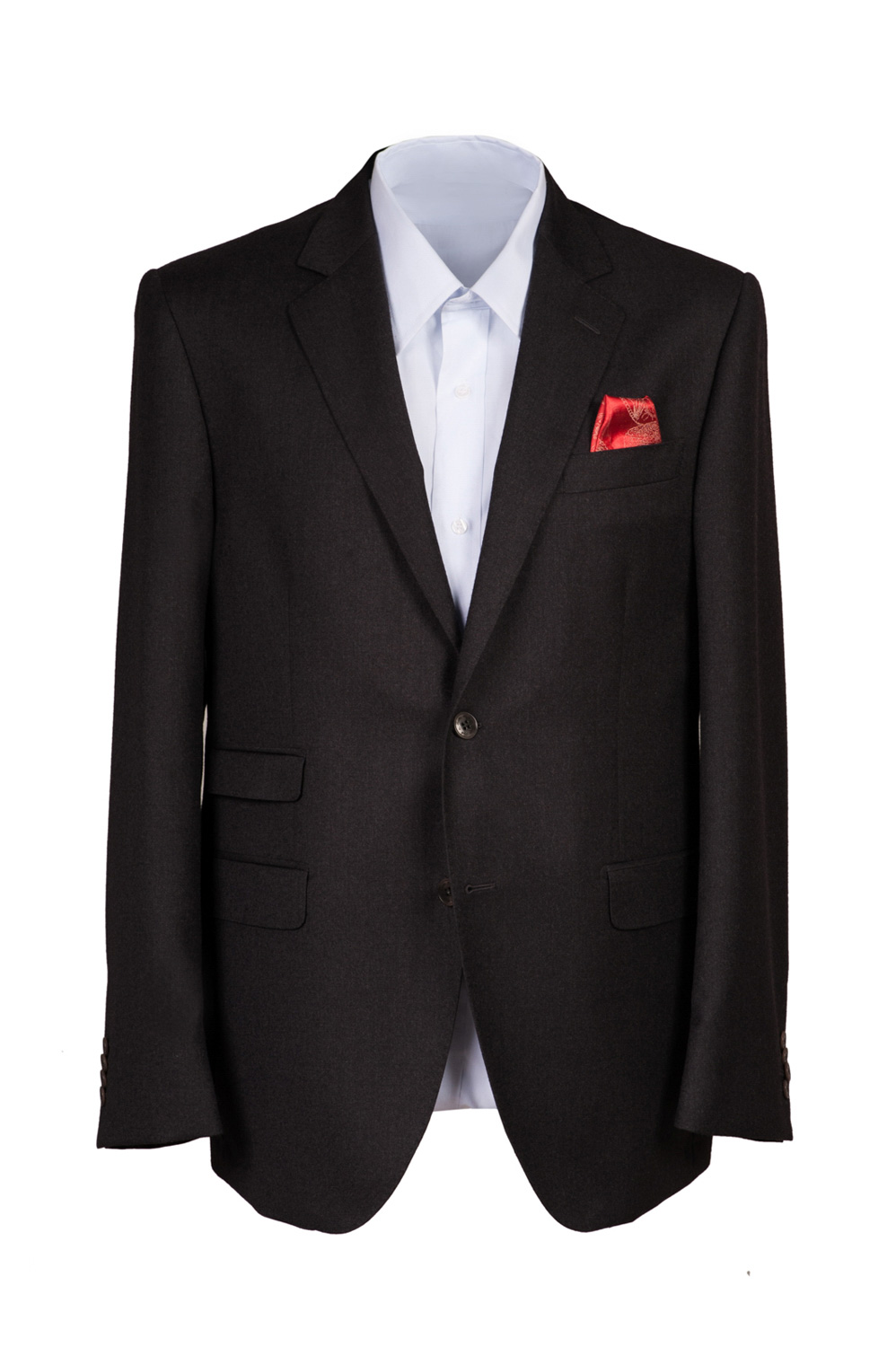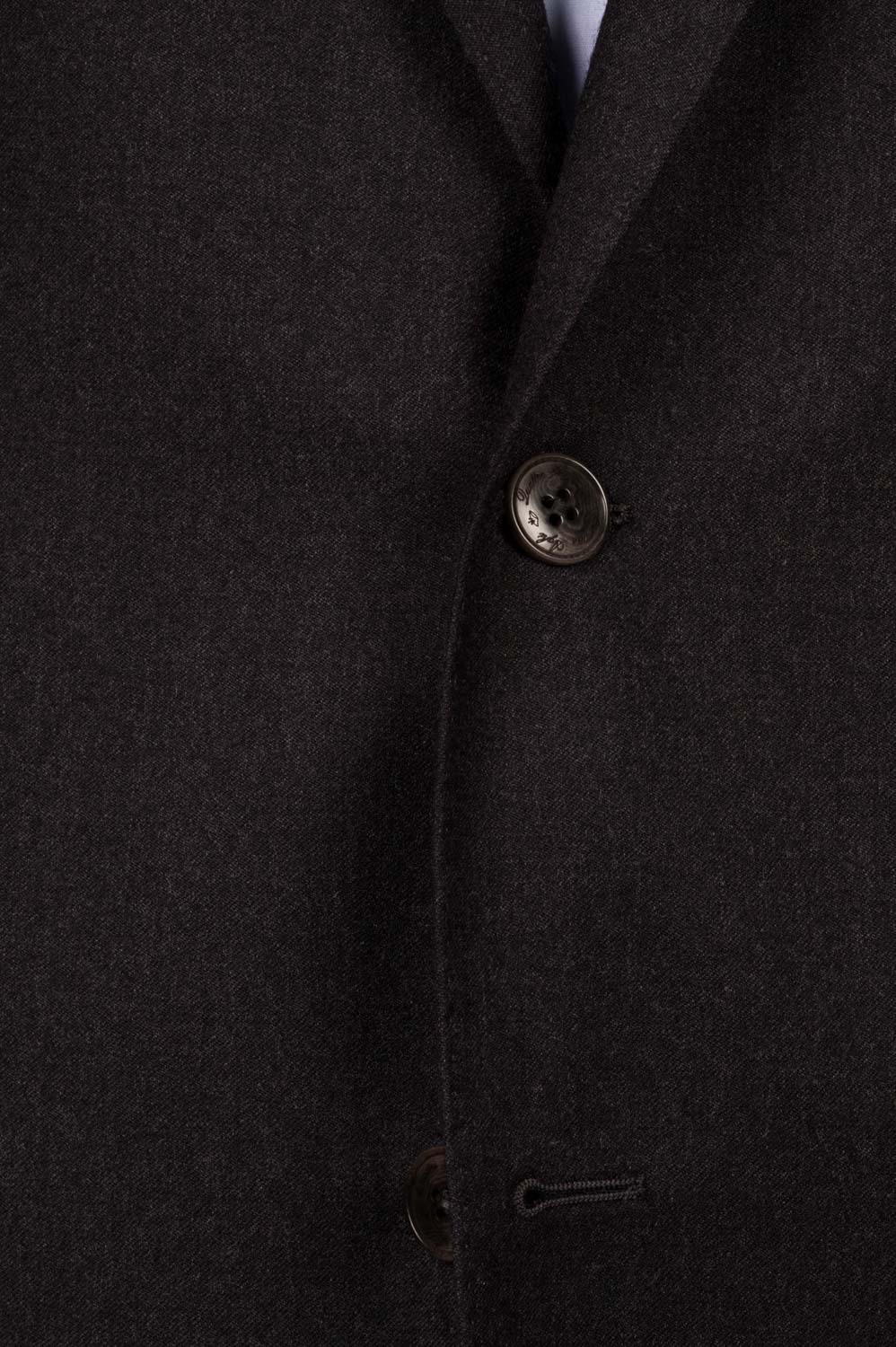 Sacou cu croiala clasica pe talia I, realizat din flanela de lana gri inchis. Compozitie: 100% lana