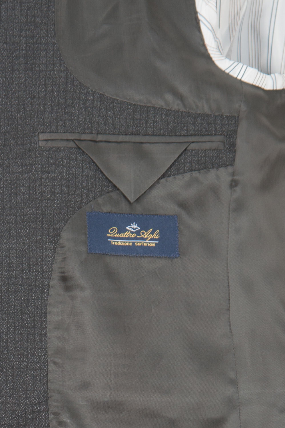 Sacou cu croiala pe talia a III-a realizat din lana gri in carouri marunte. Compozitie: 100% lana