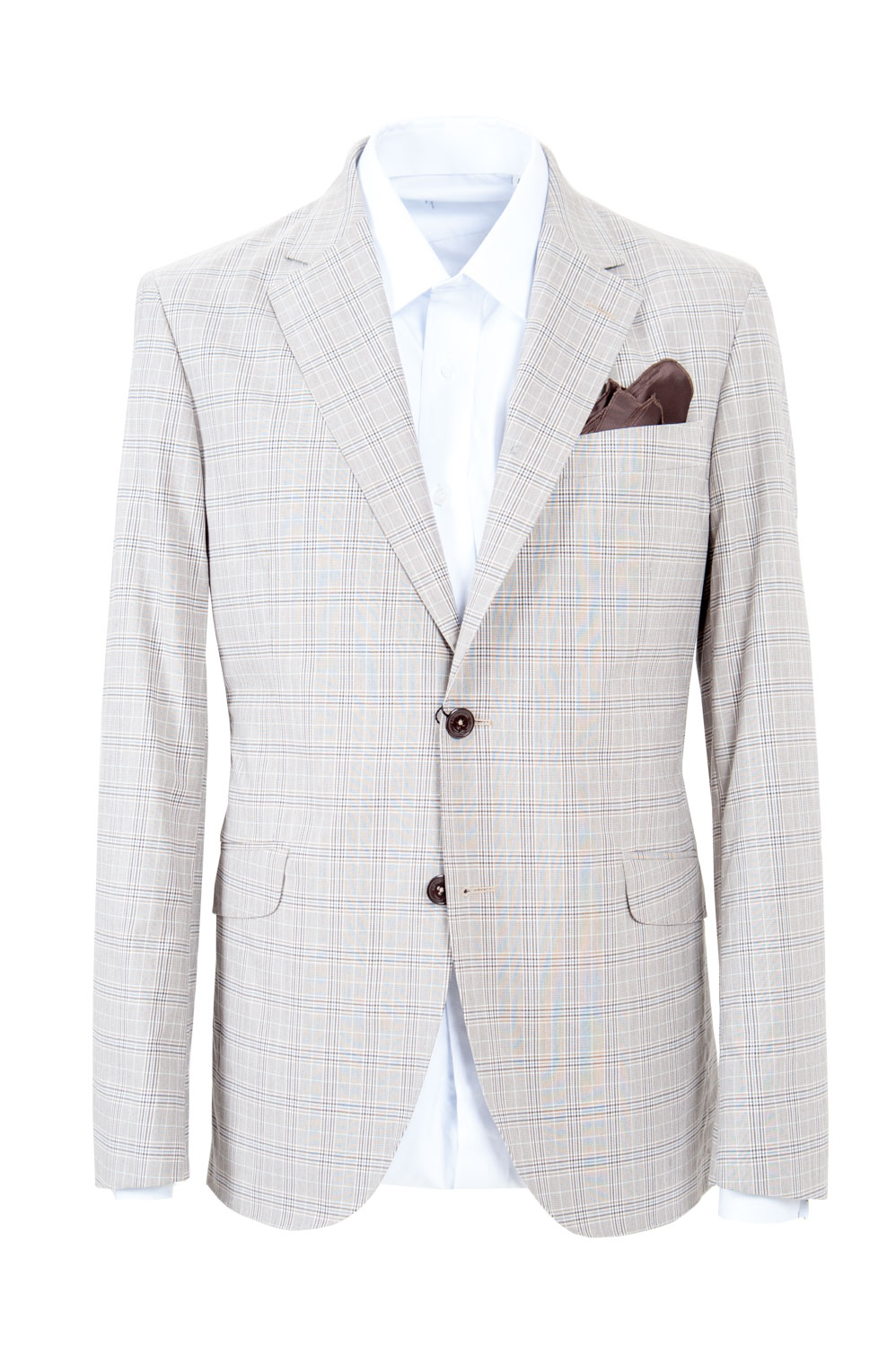 Sacou cu croiala slim-fit realizat din bumbac bej in carouri. Compozitie: 100% bumbac