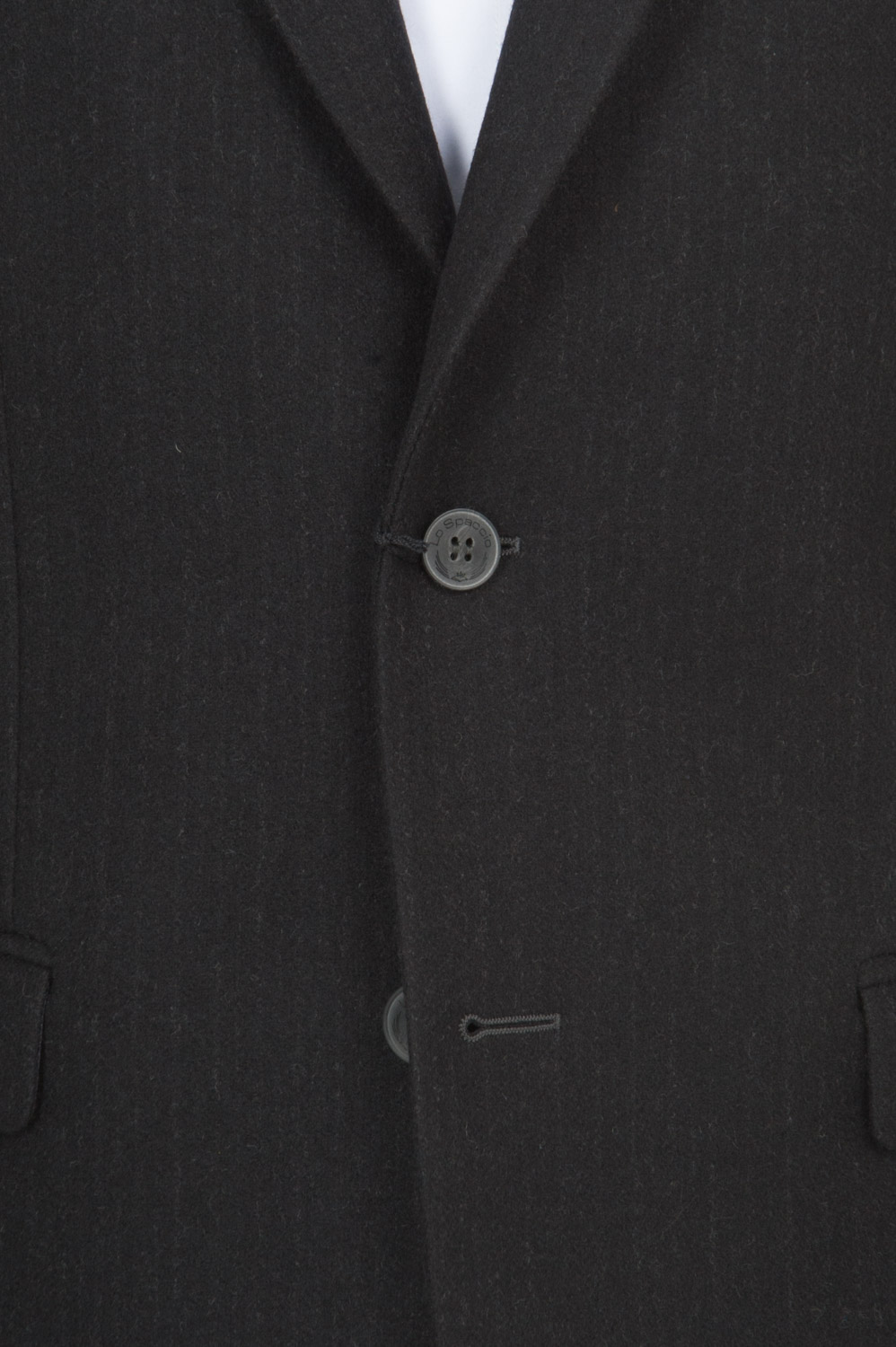 Sacou cu croiala slim-fit realizat din tesatura neagra tip doc din lana in amestec. Compozitie: 75% lana 25% poliester