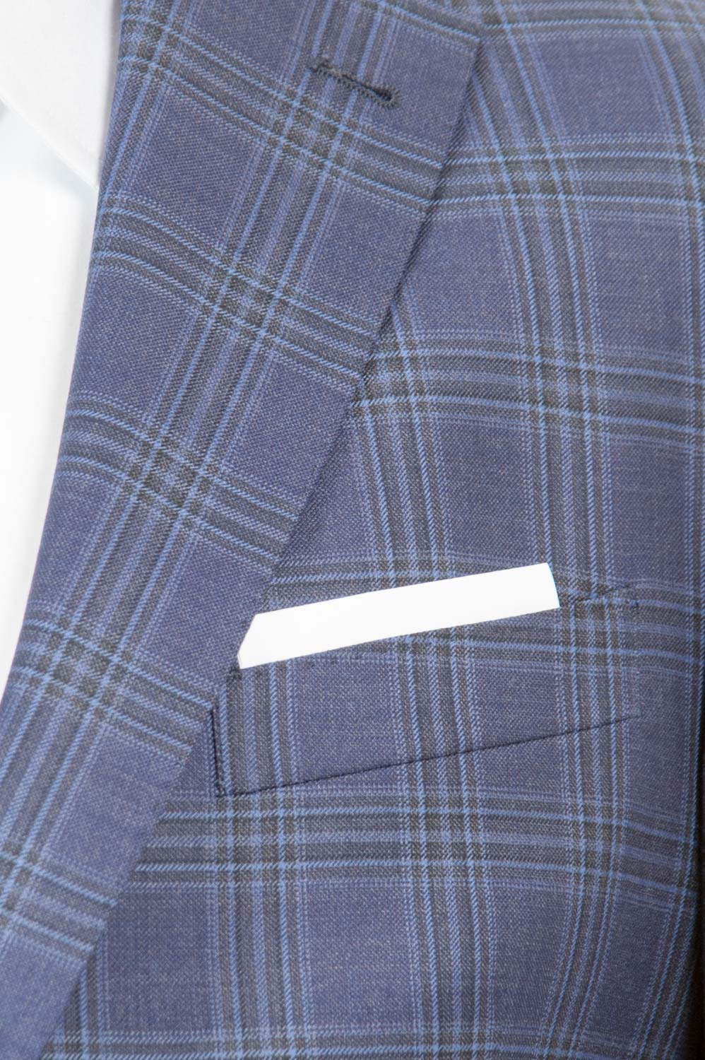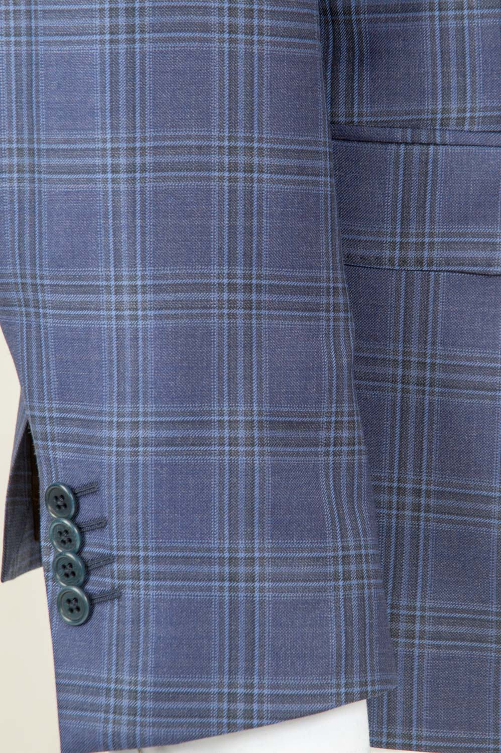 Sacou cu croiala pe talia a II-a, realizat din lana bleumarin in carouri. Compozitie: 100% lana