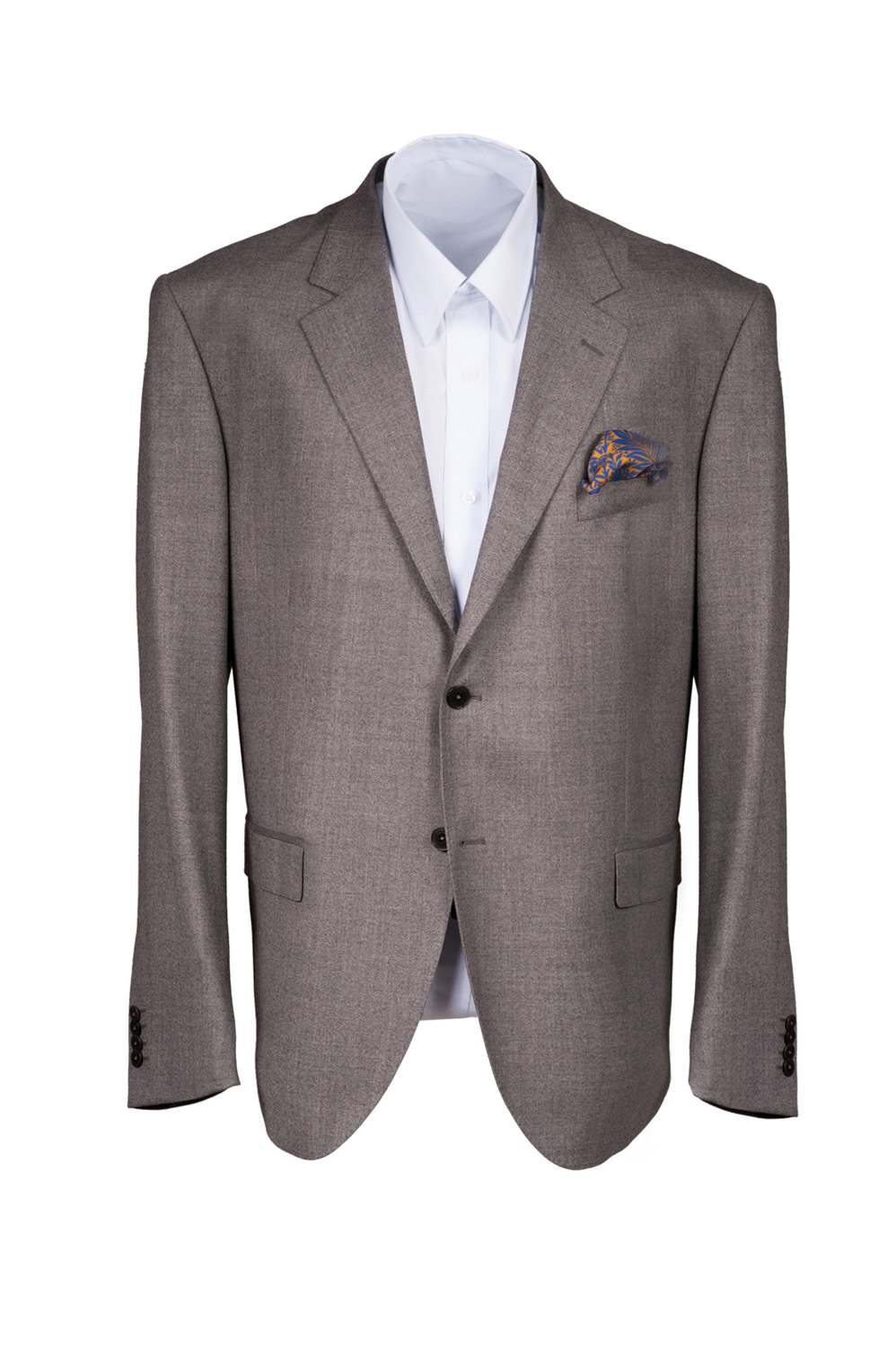 Sacou cu croiala clasica, marimi mari, pe talia I, realizat din lana gri. Compozitie: 100% lana